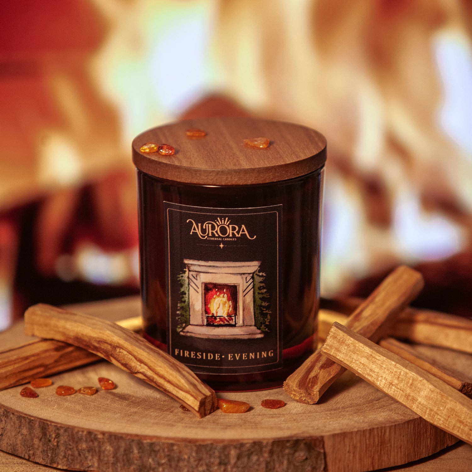 Allumez la bougie, fermez les yeux, et laissez-vous emporter par la chaleur d'un feu de bois crépitant. Les senteurs de bouleau, cèdre et patchouli diffusent un parfum réconfortant, tandis que la douce lumière transforme votre espace en un cocoon chaleureux.